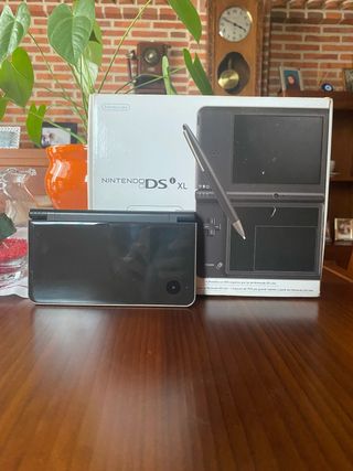 Consola Nintendo DSi XL in colore cioccolato, conservata nella sua scatola originale. Include tutti i manuali e gli accessori originali, pennino originale grande, scheda con molti giochi, custodia protettiva trasparente e due protezioni per lo schermo già installate.