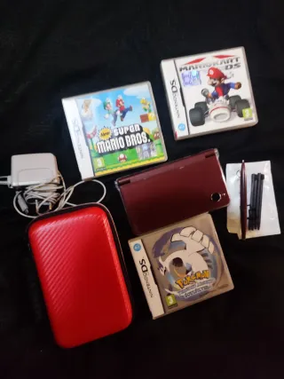 Tutto in ottime condizioni. Nintendo Ds Xl bordò (con pennini non ufficiali e penna più grande ufficiale/ cover/ borsello porta ds dove puoi inserire i giochi/ proteggi schermo di plastica su entrambi gli schermi) Pokemon soul silver originale (la cartuccia diventa rossa alla luce (il che vuole dire che è originale)vedi foto. Mario kart originale Super Mario bros originale E caricabatterie