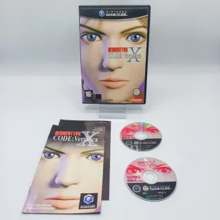 Edizione PAL del gioco Resident Evil Code Veronica X per Nintendo GameCube. Include la custodia, il manuale di istruzioni e i due dischi di gioco. - Copertina con artwork originale. - Manuale in italiano e spagnolo. - Due dischi inclusi (Disc 1 e Disc 2).