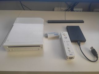 Console Nintendo Wii in bianco, pronta per ore di divertimento. Include: disco rigido con 226 giochi, vari giochi, telecomando Wii, adattatore Wii2HDMI, cavo di alimentazione, disco rigido esterno.