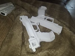 Consola Nintendo Wii in bianco, include accessori completi e quattro giochi. Viene con la sua scatola e il manuale di istruzioni. In perfette condizioni. Quasi nuova. Include: - Due telecomandi Wii Remote - Due controller Nunchuk - Adattatore di corrente - Barra sensor - Quattro giochi: Wii Sports, Wii Play, due giochi Just Dance