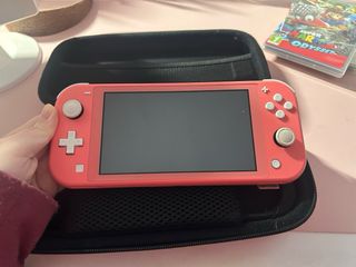 Consola Nintendo Switch Lite in colore rosa, ideale per portare i tuoi giochi ovunque. Include due titoli popolari di Mario + custodia per la conservazione. Come nuova. - Super Mario Odyssey - Super Mario Bros. Wonder - Animal Crossing: New Horizons