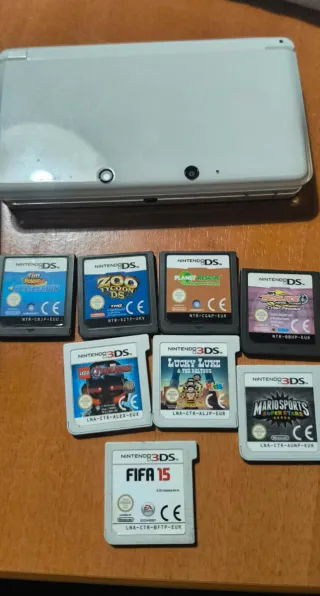 Console portatile in perfetto stato, ideale per portare i tuoi giochi preferiti ovunque. Include una fantastica collezione di titoli. 12 giochi inclusi: Luigi's Mansion 2, Angry Birds Trilogy, FIFA 14, Sonic All-Stars Racing, Super Mario 3D Land, FIFA 13, Super Mario Bros. 2, Mario Kart 7, Mario Golf World Tour, Inazuma Eleven 2, Mario Tennis Open, FIFA 15.