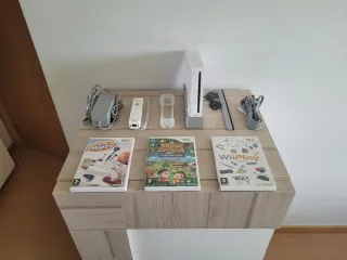 -Console Nintendo Wii Con tutti i cavi necessari, cavo di alimentazione, cavo TV e sensore di movimento. -Un controller Wii con cinturino anti-caduta. -Include Supporto per la console. -Giochi: +Wii Play (Più di 12 giochi familiari e super divertenti di ogni tipo). +Game Party (7 giochi classici e familiari, freccette, quiz e molti altri. +Animal Crossing. -Prezzo non negoziabile, già abbastanza economico. -Per qualsiasi domanda, non esitare a contattarmi tramite chat Wallapop.