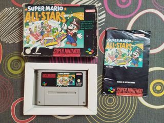 Videogioco Super Mario All Stars versione PAL Spagna per console Super Nintendo SNES, include cartuccia, scatola, istruzioni e insert. È testato e funziona correttamente. Accettiamo scambi con altri prodotti preferibilmente gaming (console e videogiochi). Per qualsiasi domanda, consultaci senza impegno!