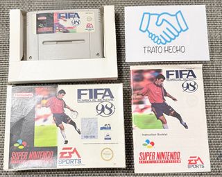 FIFA 98 (SNES) completo: cartuccia originale + scatola + manuale (PAL ESP). Testato e funzionante. Buono stato per la sua età; scatola (vedi foto). Etichetta della cartuccia leggibile. Ideale per collezione o gioco. ✅ Prezzo: accetto offerte ragionevoli via chat (indica spedizione o consegna). ✅ Spedizione: entro 24 ore lavorative dall'acquisto (non nei giorni festivi). ✅ Imballaggio: completo e molto protetto. ✅ Risposta: normalmente in meno di 1 ora. ✅ Extra: foto su richiesta + assistenza con l'acquisto. ✅ Prenotazione: 24 ore