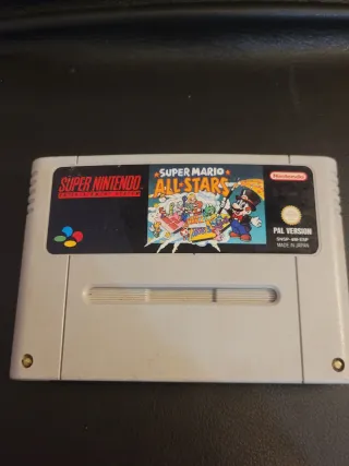 Cartuccia per Super Nintendo SNES con il gioco Super Mario All-Stars e Super Mario World. Include i giochi Super Mario All-Stars e Super Mario World. Cartuccia per console Super Nintendo SNES.