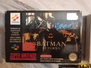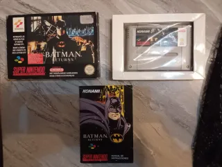 Videogioco Batman Returns per Super Nintendo. - Scatola originale, con lievi segni di usura, ma in buone condizioni generali - Cartuccia del gioco - Manuale di istruzioni in spagnolo, con difetti visibili.