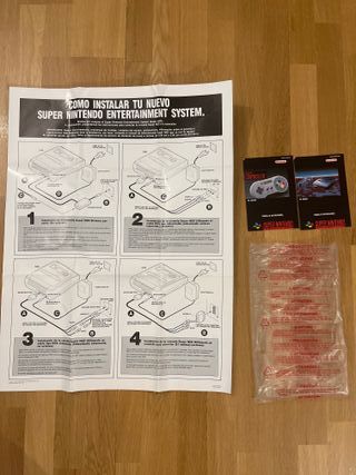 Manuale di istruzioni originale per il sistema Super Nintendo Entertainment System. Come nuovi. Manuale della console, manuale del controller e guida di connessione con poster sul retro. Conservo anche la confezione originale in plastica. Include guida di installazione passo dopo passo. Contiene diagrammi illustrati per la connessione. Testi in spagnolo. SNES