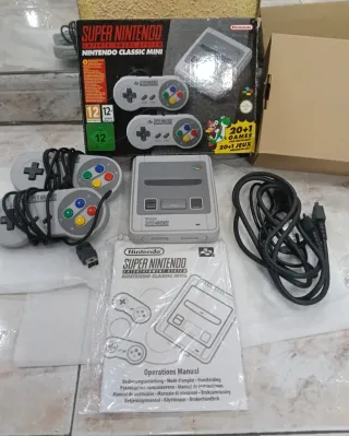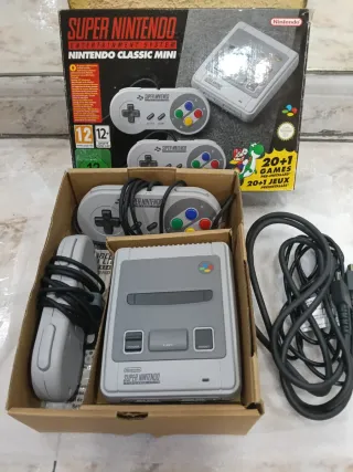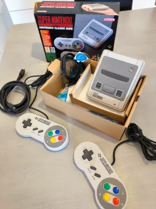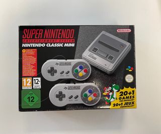 Console SNES Classic Mini di Nintendo nella sua confezione originale. Include due controller. Contiene 20+1 giochi preinstallati. Mai usata.