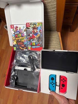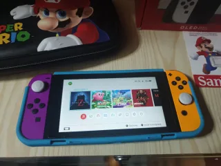 Consola Nintendo Switch modello OLED. Nuova e in realtà non l'ho usata nemmeno quando ero annoiato, include la protezione dello schermo, la cover Mario Kart, alcuni giochi, base dock, scatola originale di acquisto.