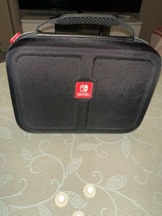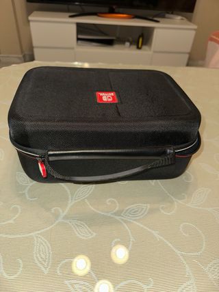 Custodia protettiva per Nintendo Switch. Progettata per offrire sicurezza e comfort. Colore nero. Materiale resistente. Maniglia per il trasporto.