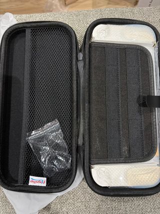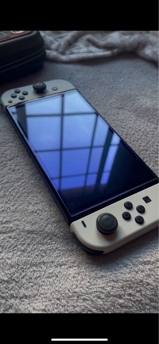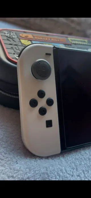 Switch OLED Bianca acquistata nel 2022 con un uso molto breve e molto ben curata. 📦 Equipaggiamento minimo: • Scatola originale della console con biglietto d'acquisto • Caricatore • Supporto per il collegamento alla TV • Binari per i controller x2 • Controller con binari per posizionare i due controller laterali della console. ✨ Equipaggiamento aggiuntivo: • Schermo protettivo in vetro già incorporato + 2 schermi aggiuntivi con kit di montaggio • Custodia protettiva in TPU e PC. • Fondine bianche per i joystick • Custodia protettiva azzurra • Leg strap per legare il controller alla gamba • Scheda 256 GB 🎮 Giochi • Pokémon Arceus • Lego Star Wars Deluxe Ed