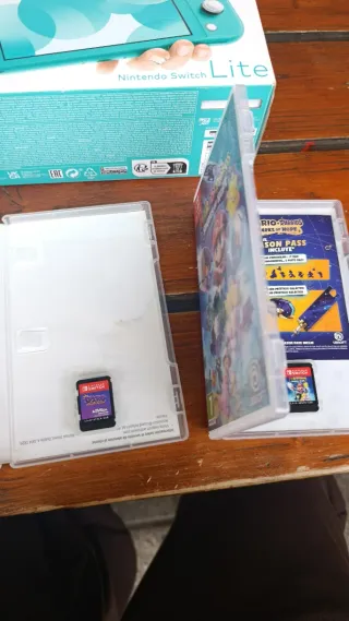 Console Nintendo Switch Lite. 110€ - Spyro Reignited Trilogy 20€ - Mario + Rabbids Sparks of Hope 20€ - Mario Bros U Deluxe 35€
