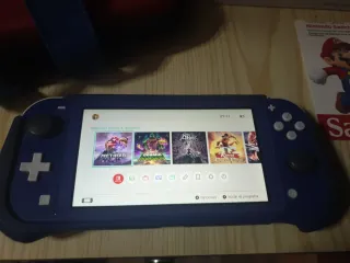 Console Nintendo Switch Lite in colore blu, ideale per portare i tuoi giochi ovunque. Include accessori per completare la tua esperienza. - Custodia protettiva nera. - Due supporti per riporre i giochi. NON NEGOZIABILI