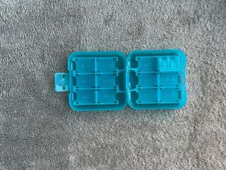 Pratico porta schede per Nintendo Switch, ideale per organizzare i tuoi giochi. - Colore azzurro. - Design compatto e resistente. - Spazio per diverse schede di gioco.