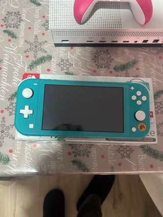 Nintendo Switch Lite color turchese. Include: - Scatola originale - Caricatore originale - Vetro temperato già installato - Custodia - Custodia per la console e i joystick - Cuffie con cavo (non utilizzate, fornite con la custodia) - Pulitore per lo schermo Console praticamente inutilizzata, era un regalo e non ho mai avuto il tempo di usarla. Possibilità di acquistare in confezione con vari giochi, chiedere senza impegno!!