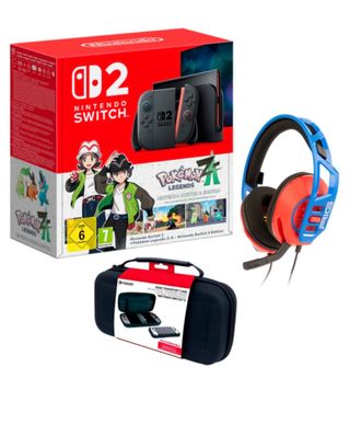 Edizione speciale del pack Nintendo Switch con il gioco Pokémon Legends: Z-A. Include console Nintendo Switch, edizione speciale Pokémon Legends: Z-A, cuffie e custodia di trasporto.
