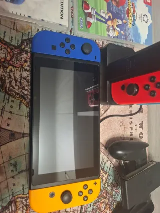 🎮 Nintendo Switch OLED - Pacco completo con scatola, gioco e custodia 🎮 In vendita Nintendo Switch OLED in ottime condizioni, curata e 100% funzionale. Include la sua scatola originale e tutti gli accessori necessari per giocare sia in TV che in modalità portatile. Include: - Console Nintendo Switch OLED - Joy-Con blu - Dock per TV - Caricabatterie della console - Cavo HDMI - Grip per Joy-Con - Cinghie - Custodia rigida da trasporto - Gioco FIFA 25 - Gioco Mario e Sonic ai Giochi Olimpici - Gioco FIFA 20 - Scatola originale Nintendo Switch OLED Tutto ciò che appare nella foto è incluso. 📦 Spedizione rapida e ben protetta.