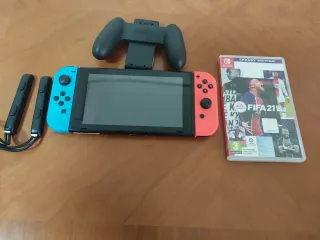 Console Nintendo Switch con il gioco FIFA 22. Include console, dock, Joy-Con (L) blu e (R) rosso. Custodia di trasporto blu. Protezioni trasparenti per Joy-Con. Gioco FIFA 22 Legacy Edition. Protezione per schermo anteriore e posteriore non utilizzata. Base di ricarica e controller per collegare i joystick. Si vende per non utilizzo, la console è perfetta, molto curata e con tutti i tipi di protezioni.