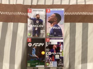 Pacchetto di quattro videogiochi di calcio per Nintendo Switch. - FIFA 21 Legacy Edition - FIFA 22 Legacy Edition - FIFA 23 Legacy Edition - EA SPORTS FC 24 Se qualcuno vuole solo un gioco e non tutti e 4 scriva in privato