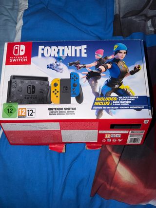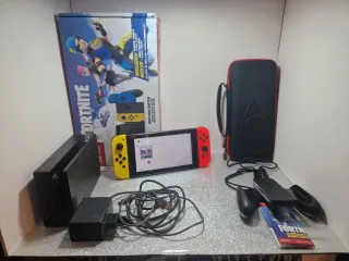 Consola Nintendo Switch, edizione Fortnite. Contiene: -Scatola originale -Base/dock per TV -Cavi originali -Joy-Con perfettamente funzionanti -Correas/adattatori per polso -Supporto per unire i due Joy-Con -Controller aggiuntivo tipo PlayStation -Pokémon Shield in formato fisico con scatola -Minecraft in formato fisico (senza scatola) -Borsa di trasporto (con discreto utilizzo, ma funzionale) Prezzo negoziabile. Si possono chiedere informazioni senza impegno e richiedere altre foto.