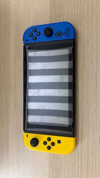 Console Nintendo Switch con un design bicolore accattivante, modello Fortnite. - Joy-Con sinistro in giallo. - Joy-Con destro in blu. - Include tutti gli accessori, controller per i Joy-Con, adattatori per giocare con i Joy-Con individuali, caricatore, supporto per TV e cavo HDMI. In vendita: - Protezione in plastica rigida per l'intera console. - Custodia ergonomica in plastica per un miglior adattamento alle mani. - Controller per Joy-Con. - Protezioni per lo schermo. - Supporto per giocare sul tavolo. - Giochi: Fifa 21, Fifa 22, Fifa 23 e Pokemon Spada. - Custodia grande Nintendo. - Custodia per i giochi.