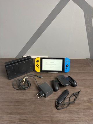 Nintendo Switch edizione Fortnite. 📦INCLUDE: Mando Joy-Con giallo e blu.✅ Base di ricarica.✅ Protezione dello schermo.✅ Gioco Harry Potter Collection.✅ Gioco Minecraft.✅ Gioco Animal Crossing.✅ Gioco Nintendo Labo 01.✅ Caricatore di corrente.✅ Custodia per lo schermo e Joy-Con.✅ HDMI.✅ Mando wireless Nintendo.✅ Adattatore Joy-Con.✅ Kit di riparazione per joystick.✅ Adattatore accessorio per Joy-Con.✅ 🎮STATO: Tutto perfetto con solo segni d'uso, l'unico problema è che il Joy-Con giallo a volte dà problemi o non si connette bene all'inizio o a volte ha drift, quindi includo il kit.