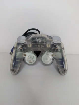 Controller originale Nintendo GameCube in versione bicolore Indigo/Clear con scocca superiore viola e posteriore trasparente. Il dispositivo è in ottime condizioni estetiche e perfettamente funzionante in ogni sua parte, inclusi stick analogici precisi, tasti reattivi e motorino della vibrazione. Compatibile con console GameCube, Wii (modelli RVL-001) e Switch tramite apposito adattatore. Cavo originale integro e connettore senza ossidazione.