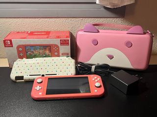 Console portatile Nintendo Switch Lite in colore rosa. Include custodia protettiva e caricabatterie. Include: - Custodia da trasporto. - Adattatore di corrente.