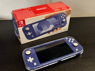 Console portatile Nintendo Switch Lite in colore blu e nella sua confezione originale, in perfette condizioni. Include custodia per il trasporto e caricabatterie originale.