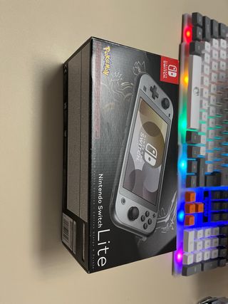 Console portatile Nintendo Switch Lite con un design speciale Pokémon. Colore grigio con dettagli Pokémon sul retro. Include custodia protettiva. Include scatola originale come si vede nella foto. Scomparti per giochi e giochi all'interno.