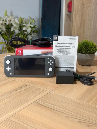 Console portatile Nintendo Switch Lite in colore grigio, ideale per portare i tuoi giochi ovunque. Include accessori per l'uso e il trasporto. - Custodia protettiva in silicone. - Caricatore. - Valigetta di trasporto rigida. - Protezione per lo schermo in vetro temperato con strato anti-luce blu. - Fornito anche con caricatore e scatola originali.