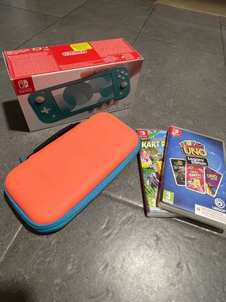 Console portatile Nintendo Switch Lite in colore blu, ideale da portare ovunque. Include custodia protettiva. La Switch più compatta e portatile con molte "possibilità" in perfetto stato. Include: • Carcasa come nuova e schermo impeccabile. • Funziona perfettamente, ideale per regalare o giocare comodamente. Dettagli aggiuntivi: • Caricabatterie incluso. • Joystick nuovi. • La batteria è in ottime condizioni. • Con microsd da 256 GB + 23 giochi! (se c'è un gioco che non c'è, chiedimi e te lo metto). • Viene regalato un proteggi schermo installato! - Schermo touch. - Controlli integrati. - Design compatto e leggero.