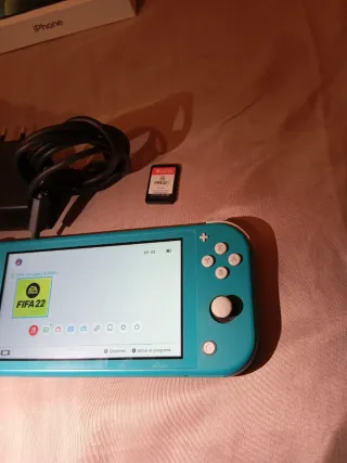 Console Nintendo Switch Lite in colore blu, ideale per portare i tuoi giochi ovunque. Include il gioco FIFA 22. - Include caricabatterie. - Include cartuccia del gioco FIFA 22.