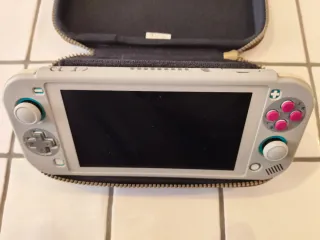 Console portatile Nintendo Switch Lite in colore grigio. Include custodia protettiva, cover, protezione per lo schermo e caricatore (non include scatola). - Schermo touch. - Controlli integrati. - Design compatto e leggero.