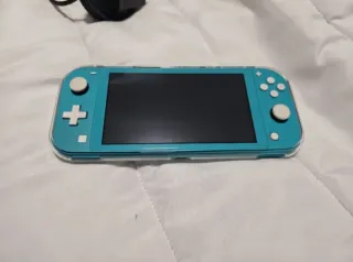 Console Nintendo Switch Lite in color turchese, ideale per giocare ovunque. Include vari accessori per completare la tua esperienza. - Custodia protettiva rigida. - Cover protettiva in silicone. - Protezione dello schermo in vetro. - Base di ricarica. - Cavo di ricarica con garanzia, poiché quello originale si è rotto.