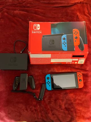 🎮 Nintendo Switch con accessori. Include: Console Nintendo Switch, Dock di ricarica, 2 Joy-Con, grip per Joy-Con, cavo di alimentazione e HDMI. 🎁 In regalo scheda micro SD da 128 GB non ufficiale di Nintendo e cuffie con microfono. Tutto testato e funzionante perfettamente. 🚛 Spedizioni in 24/48 ore. Consegna a mano a Granada. + altri articoli nel mio profilo.