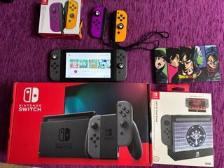 Console Nintendo Switch con accessori. - 4 Joy-Con (2 grigi) (2 viola e giallo) - Dock per Nintendo Switch. - Protezione per lo schermo. - Dock con luce LED. - Custodia di Dragon Ball Z. - Micro SD Sandisk Ultra 128 GB