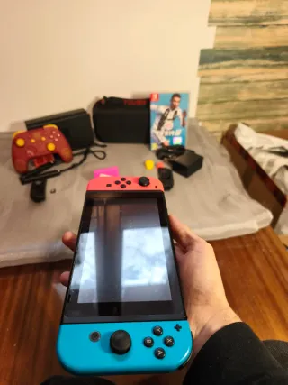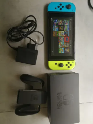 Nintendo Switch in perfetto stato. Console ideale per giocare sia in modalità portatile che sul TV. 🎮 Contenuto del pack: • 📺 Console: Schermo impeccabile. • 🎮 Joy-Cons: Controller Blu e Giallo Neon. • 🔌 Accessori: Dock, grip, cinghie, caricabatterie e cavo HDMI. • 💾 Memoria: Scheda Micro SD da 32GB inclusa. Stato: • ✅ Funzionamento: Tutto testato e al 100%. • ⚙️ Sistema: Ripristinato ai valori di fabbrica. 📍 Consegna a mano a Lorca o spedizione tramite Wallapop. 📦💨