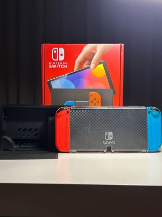 Console Nintendo Switch modello OLED. - Joy-Con di colore blu e rosso. - Schermo OLED. - Include scatola originale. - Con scheda micro sd da 128 GB e giochi.