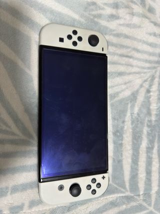 Switch OLED Bianca acquistata nel 2022 con un uso molto breve e molto ben curata. 📦 Equipaggiamento minimo: • Scatola originale della console con biglietto d'acquisto • Caricatore • Supporto per il collegamento alla TV • Binari per i controller x2 • Controller con binari per posizionare i due controller laterali della console. ✨ Equipaggiamento aggiuntivo: • Schermo protettivo in vetro già incorporato + 2 schermi aggiuntivi con kit di montaggio • Custodia protettiva in TPU e PC. • Fondine bianche per i joystick • Custodia protettiva azzurra • Leg strap per legare il controller alla gamba • Scheda 256 GB 🎮 Giochi • Pokémon Arceus • Lego Star Wars Deluxe Ed