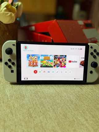 Nintendo Switch OLED in ottime condizioni, sempre curata e perfettamente funzionante. Include: • Console Nintendo Switch modello OLED • Joy-Cons originali • Dock originale • Correas Joy-Con • Scatola originale • The Legend of Zelda: Tears of the Kingdom (gioco fisico) • Caricatore compatibile (non originale) La console viene consegnata ripristinata ai dati di fabbrica. I giochi digitali visti nelle foto NON sono inclusi, mostrati solo per verificare il funzionamento. Prezzo: 260 € negoziabili. Consegna a mano o spedizione tramite Wallapop. Nessun cambio.