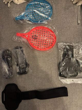 Pacchetto di accessori sportivi per Nintendo Switch e Switch OLED. Include: 2 impugnature per Joy-Con, 2 racchette da tennis, 2 mazze da golf, 2 spade, 2 fasce per le gambe, 2 fasce per il polso.