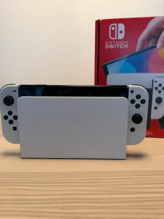 Console Nintendo Switch modello OLED in colore bianco. Goditi i tuoi giochi preferiti con uno schermo vibrante e nitido. La vendo a questo prezzo perché all'accensione il ventilatore emette un rumore, ma dopo due minuti si calma, non so se è per manutenzione o altro. Per 5€ in più includo Mario Kart in cartuccia. - Schermo OLED da 7 pollici. - Base con supporto regolabile. - Archiviazione interna da 256 GB.