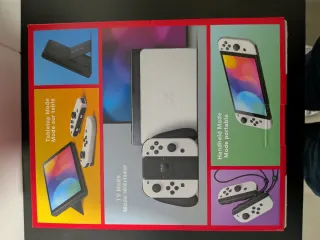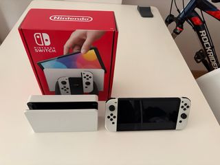 Consola Nintendo Switch modello OLED in colore bianco. In ottime condizioni estetiche, presenta i soliti segni d'uso ma nessun graffio o urto, testata e funzionale al 100%, Joycons senza drift e con tutti i pulsanti funzionanti, l'unico dettaglio è che la scatola ha una parte del cartone usurata ma la console è al 100%, posso inviare foto e video su richiesta. Se desideri maggiori informazioni puoi chiedermi, assistenza rapida e personalizzata garantita. - Schermo OLED da 7 pollici. - Base di ricarica. - Cavo HDMI. - Caricabatterie originale. - Cinghie e grip.