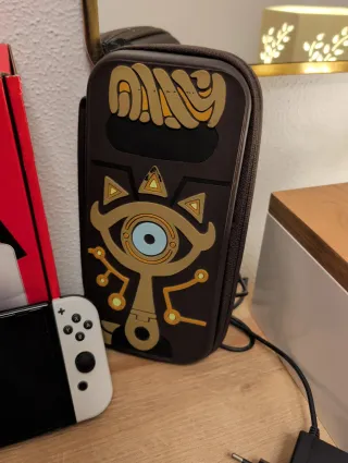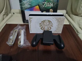 Consola Nintendo Switch con design speciale di The Legend of Zelda: Tears of the Kingdom. Include: la console, dock di ricarica con design esclusivo, Joy-Con (L) e Joy-Con (R), agarre per Joy-Con, cavi e adattatori, manette Switch Pro, custodia di trasporto con separatori per cartuccia, accessori di protezione per Joy-Con e console, 4 stick per Joy-Con, base per console, scheda da 128GB installata, proteggi schermo installato. Tutto in perfetto stato.