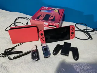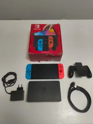 Nintendo Switch OLED con vari accessori originali. Include: ✅ Nintendo Switch OLED. ✅ Joy-Con. ✅ Supporto per Joy-Con. ✅ Dock. ✅ Cavo di alimentazione. ✅ HDMI. ✅ Scatola (anche se molto usurata). Tutto funziona perfettamente e lo schermo è perfetto. Le gomme originali dei joystick sono state sostituite con quelle colorate, che sono un po' allentate, ma non influisce sul gioco. Abbiamo anche altri articoli correlati nel profilo se si desiderano acquistare con la console (giochi, controller Pro, schede SD, ecc.). Inoltre, ora acquistiamo i vostri prodotti gaming, contattateci! Facciamo anche spedizioni!