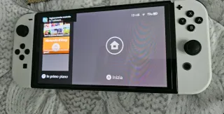 Nintendo Switch OLED in bianco. Lo schermo OLED è eccezionale, la differenza con la normale è enorme. - Schermo OLED da 7 pollici. - Controller per JoyCon. - JoyCon smontabili. - Dock per collegare alla TV. - Cavo di alimentazione, HDMI e USB/USBC. - Scatola originale. - Custodia da viaggio in OMAGGIO con capacità per 8 carte di gioco fisiche, tutti i cavi necessari e JoyCon extra.