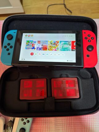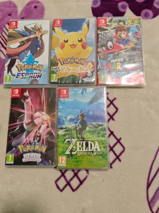 OFFERTE. Console Nintendo Switch con tutti gli accessori e giochi. Tutto come nuovo tranne la Switch con delle righe sullo schermo ma funziona perfettamente e i controller sono nuovi. - Include controller aggiuntivi. - Giochi: Super Mario Odyssey, Pokémon Spada, Pokémon Eevee. - Gioco FIFA 22 e Mario+Rabbids senza scatola. - Custodia da trasporto Zelda.